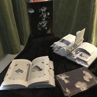 In an ideal situation I would still want to combine some altered carved books with the praxis I have completed so far. I have the photo montages where I combined my stilettos with the fragments from the books I had carved earlier in the year and added my gavel, another object and double-symbol representing both justice and commerce.]